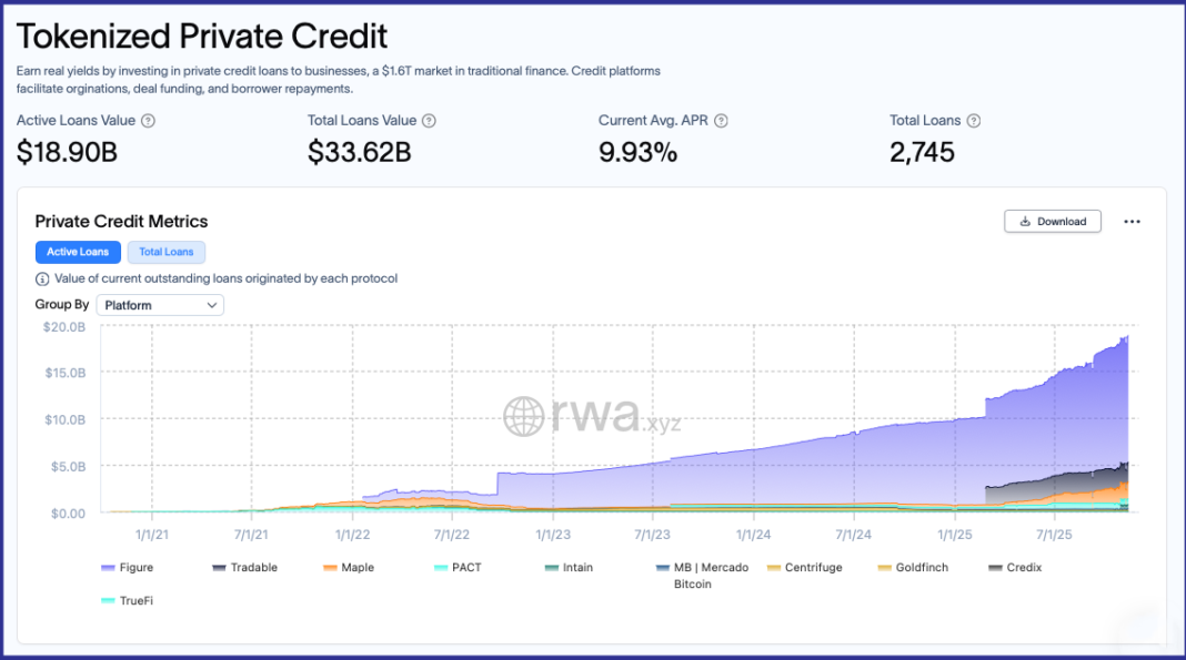 The tokenized private credit market stands at $18.9 billion in active loans. This figure is largely void of the $2.5T in unmet financing needs for trade finance assets. Source: RWA.xyz